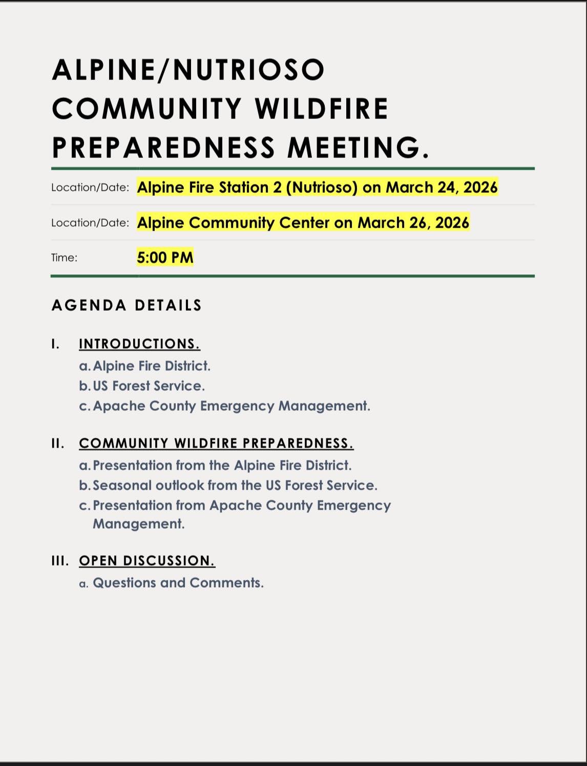Alpine/Nutrioso Community Wildfire Preparedness Meeting